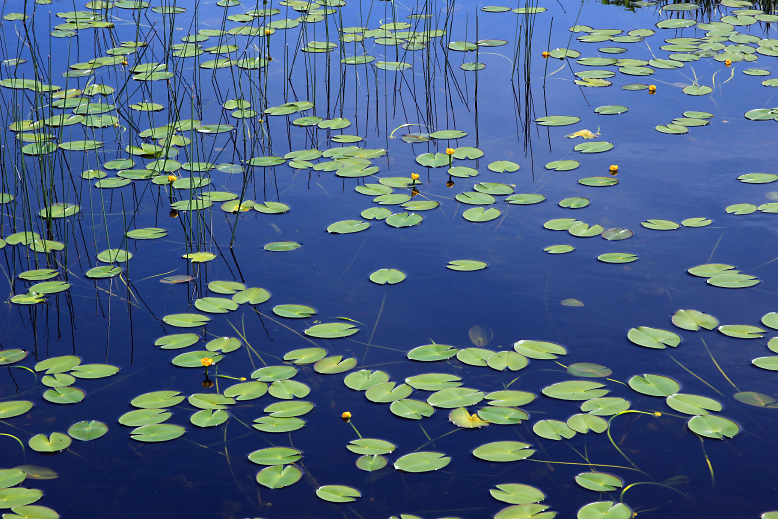 花に近付けないので水面を広く撮るしか出来ないが、写真的にはこの方が良い絵になる。