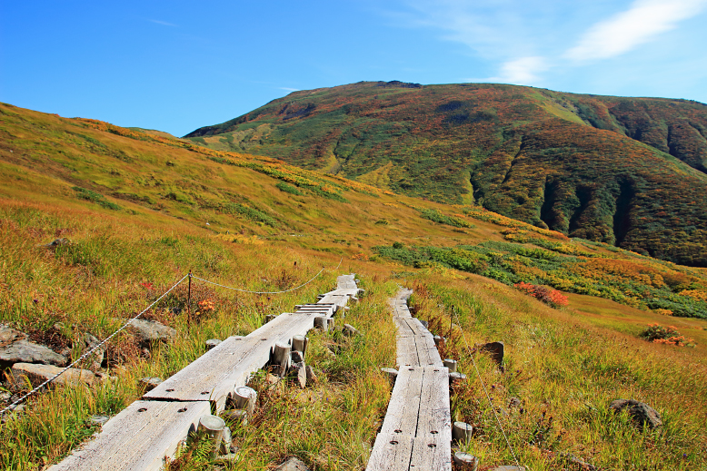 この辺は残雪が多いので、一面の草原。この先、志津から姥沢を経由して登る登山道(参道)が合流する。