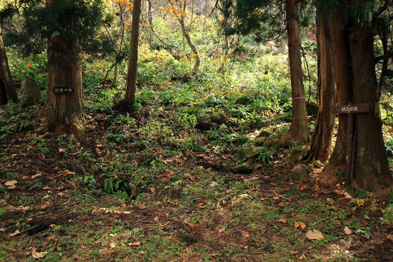 時期に依るのかも知れないが、今は池は無い。水が湧き出す様な窪みが在る。