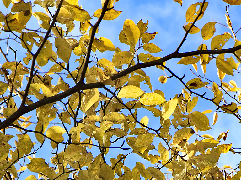 くすんだ黄色に色付く。今日は実を全く見なかった。ブナの実も、ドングリも、アズキナシの実も、木の実は全部不作だった様だ。